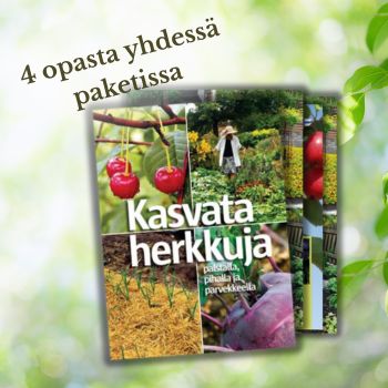 Neljä tiivistä, kuvitettua vihkosta puutarhan perusteista.