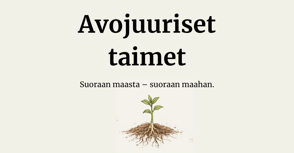 Avojuurisen taimen idea on, että juuristo pääsee heti kosketuksiin ympäröivän maan kanssa.