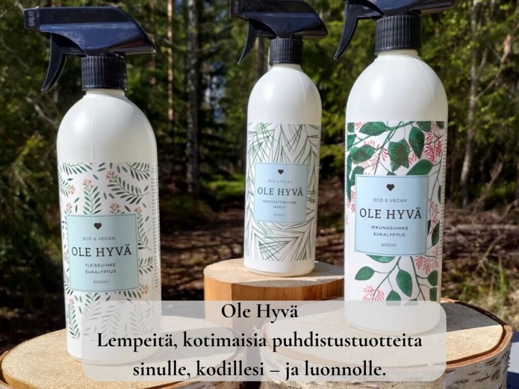 Puhdas koti ei vaadi myrkkyjä, muovia eikä ylimääräistä kemikaalikuormaa. Se voi olla pehmeästi tuoksuva, tehokas ja samalla lempeä sekä sinulle, läheisillesi että ympäristölle.