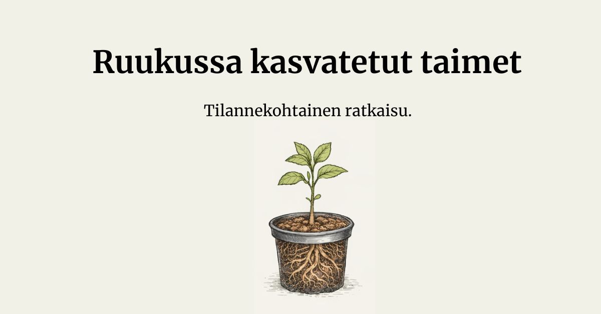 Ruukkukasvatetulla taimella on mukanaan multapaakku. Se suojaa juuristoa ja antaa hieman joustoa istutusajankohdan suhteen.