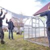 Kasvihuone asennetaan maaperään mukana tulevilla maa-ankkureilla.