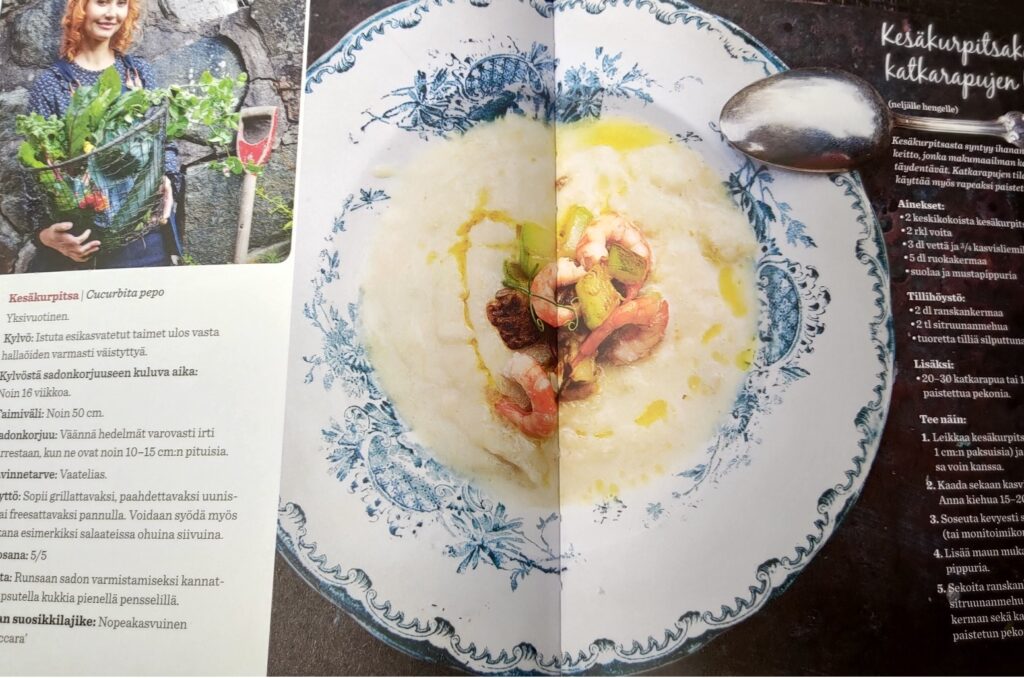 Kasvikohtaisten viljelyohjeiden lisäksi kirjassa on mukana myös vinkkejä lajikkeiden valintaan. Muistan ihmetelleeni aloittelevana keittiötarhurina eri lajikkeita, miksi niitä ylipäätään on ja millä perustein niitä kuuluisi valita. Lajikkeilla on kuitenkin monilla kasveilla tosi iso merkitys viljelyn onnistumiseen. Sillä on väliä, onko vaikkapa härkäpapulajike ”aikainen” vai ”myöhäinen” tai sopiiko tomaattilajike ruukkukasvatukseen ollenkaan.