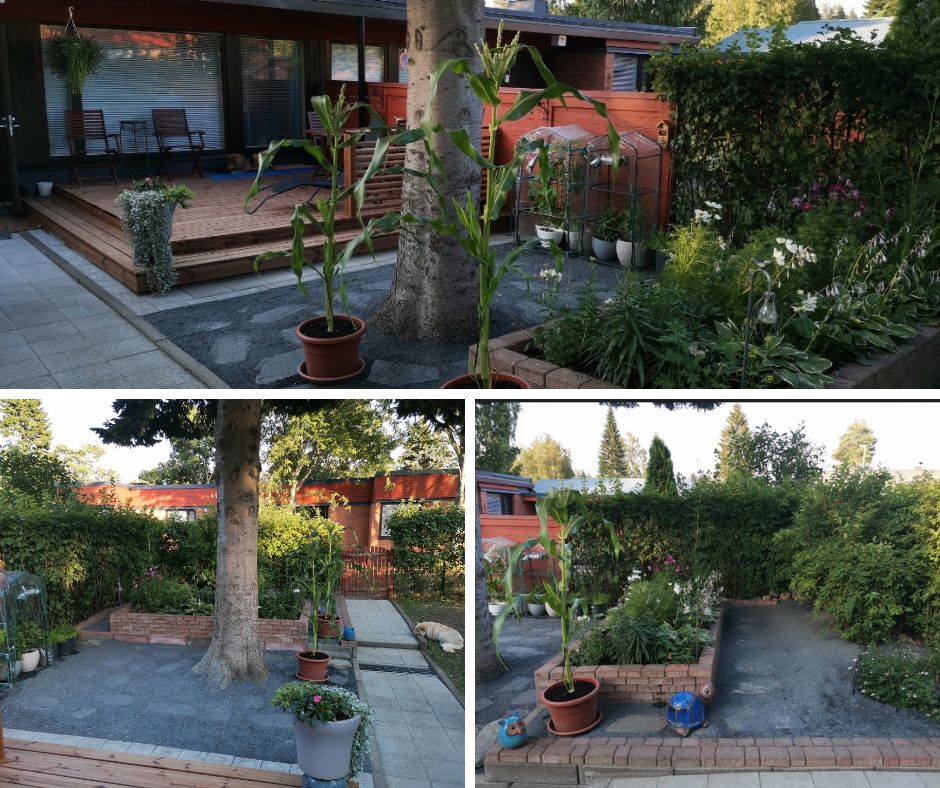 Olen aina tykännyt touhuta puutarhassa ja kasvimaalla mökillä sekä omassa pihassa. Rivitalon pihassa teimmekin pihaan suureen muodonmuutoksen ja nyt sen ylläpitäminen on helppoa ja huoletonta. Puutarhan hoidossa ja suunnittelussa saa olla ajatukset luovimmillaan ja tuntea läheisyyttä luontoon.