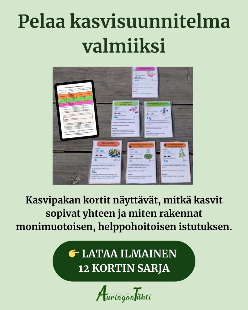 👉 Sinun ei tarvitse enää miettiä, mitkä kasvit sopivat yhteen – toimiva kokonaisuus syntyy helposti kortteja yhdistelemällä.