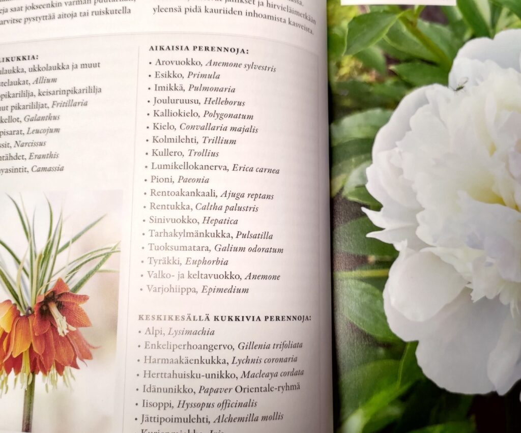 Kirjasta löytyy myös listat kasveista, jotka kirjoittajan kokemuksen mukaan maistuu ainakin tietyille elukoille huonommin. Näitä ohjeita varon itse aina antamasta, sillä oma kokemukseni on, että kaikki maistuu lopulta, kun nälkä kasvaa riittävän suureksi! Listoja kannattaa kuitenkin seurailla, jos haluaa pienentää riskejä.